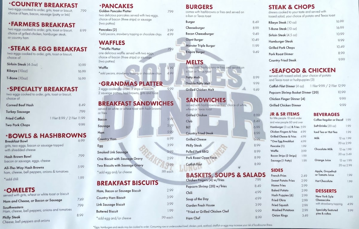 At 3 Squares Diner in Bainbridge, GA, the menu is a nostalgic journey into classic American diner fare, crafted with care and affordability. Their breakfast biscuits stand out — from the savory Ham and Sausage Biscuits to the comforting Biscuit & Sausage Gravy, all priced reasonably under $5. For a hearty start, bowls like the Breakfast Bowl and AllTheWay Hashbrowns offer generous portions loaded with flavors that satisfy any appetite.